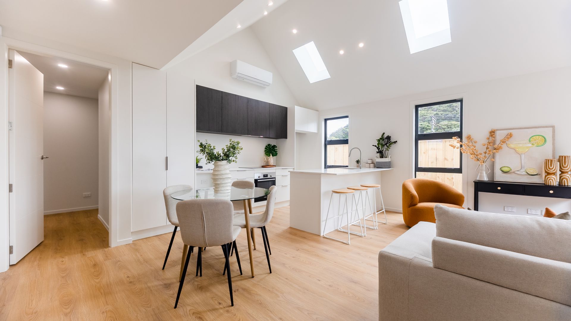 Welcome to Ruahine Rise, where modern design meets easy, everyday living. Step inside 2C Mamaku Street and you’re greeted by a light-filled living space, enhanced by a pitched ceiling that adds a real sense of openness and style. The kitchen, dining, and living flow naturally together, creating a space that feels both functional and inviting. The skylights are a fantastic feature that bathe this space in natural light throughout the day. There are three generous double bedrooms, including a well-positioned main suite with its own ensuite. One of the bedrooms offers a built-in office nook, ideal for working from home, an additional lounge, or adapting to suit your lifestyle.